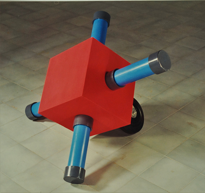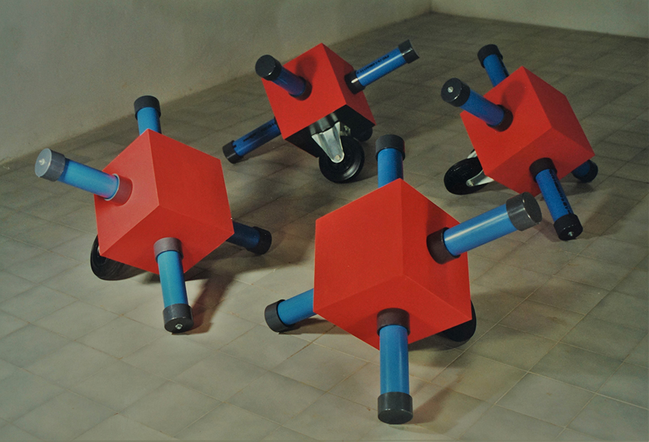 Madera, plástico, caucho y ruedas, 53 x 120 x 120 cm   x4