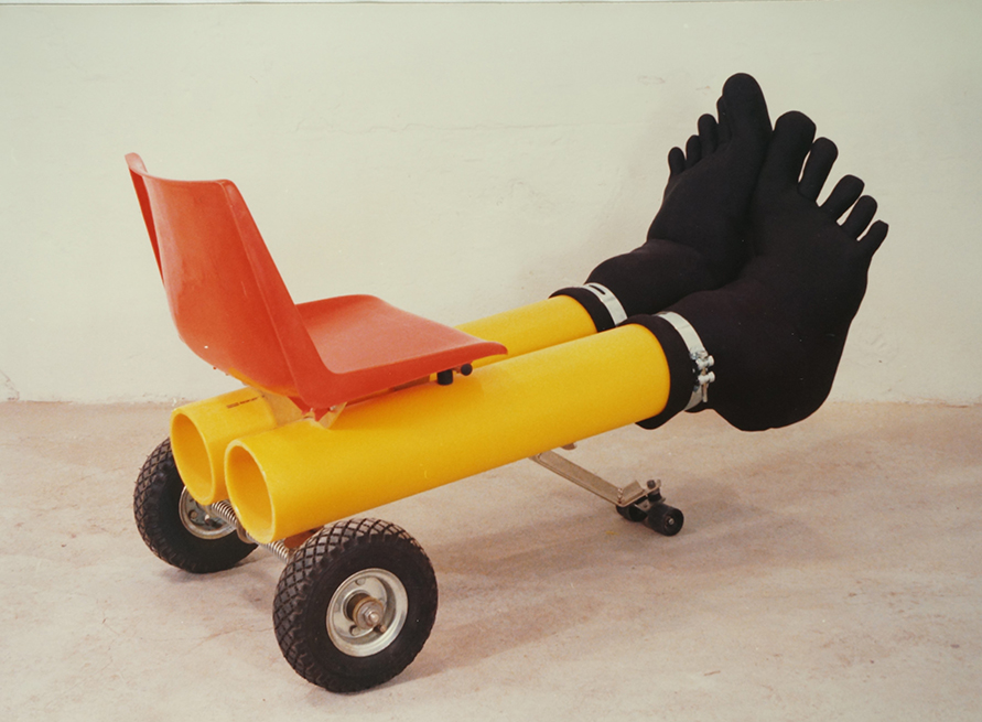 Plástico, tela, acero y ruedas, 75 x 125 x 70 cm