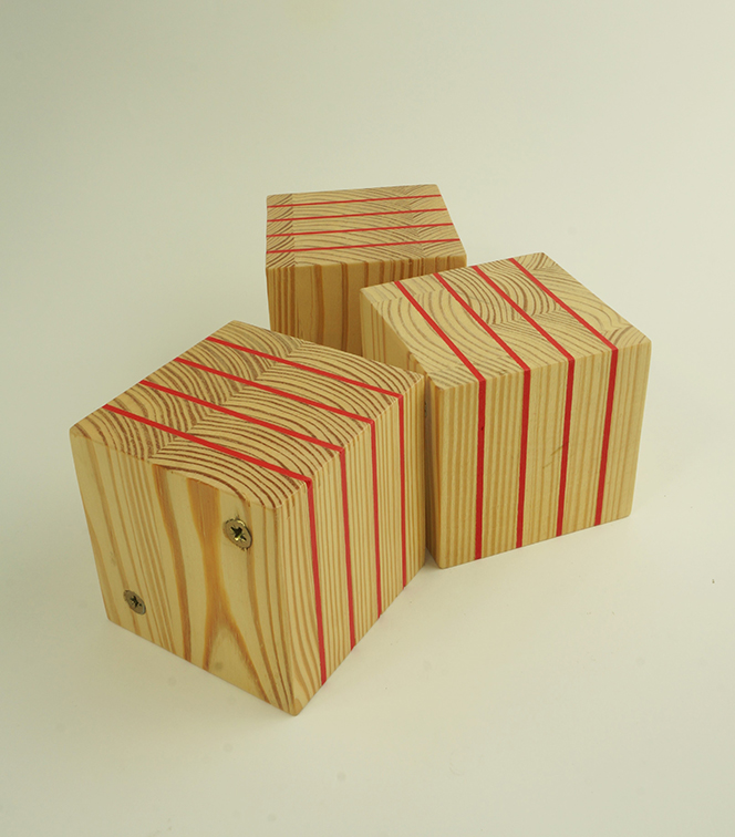 Madera y plástico, 10 x 10 x 10 cm x5