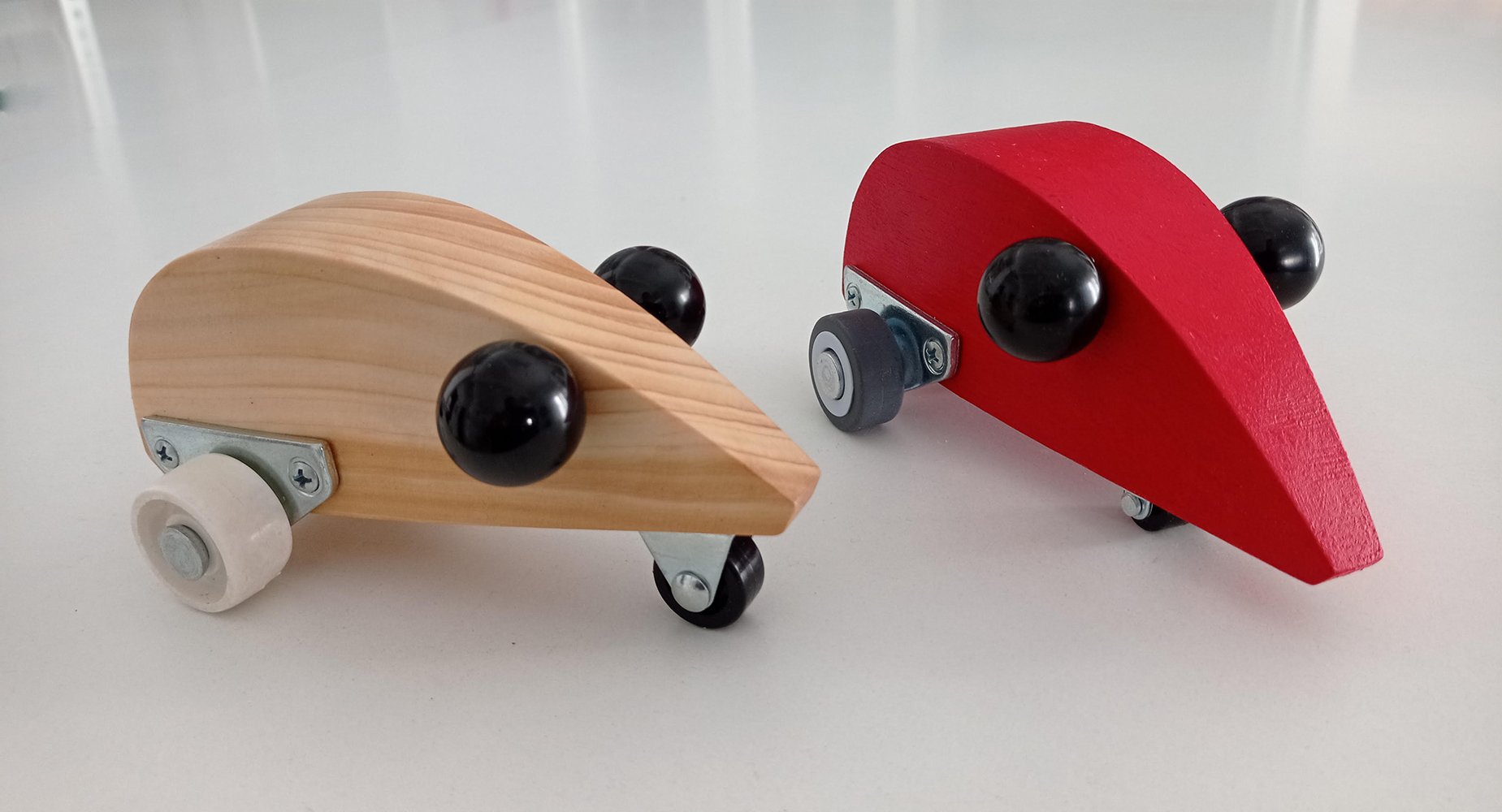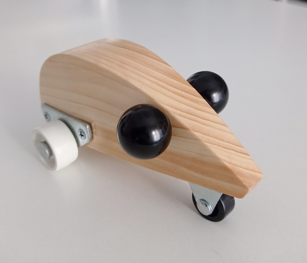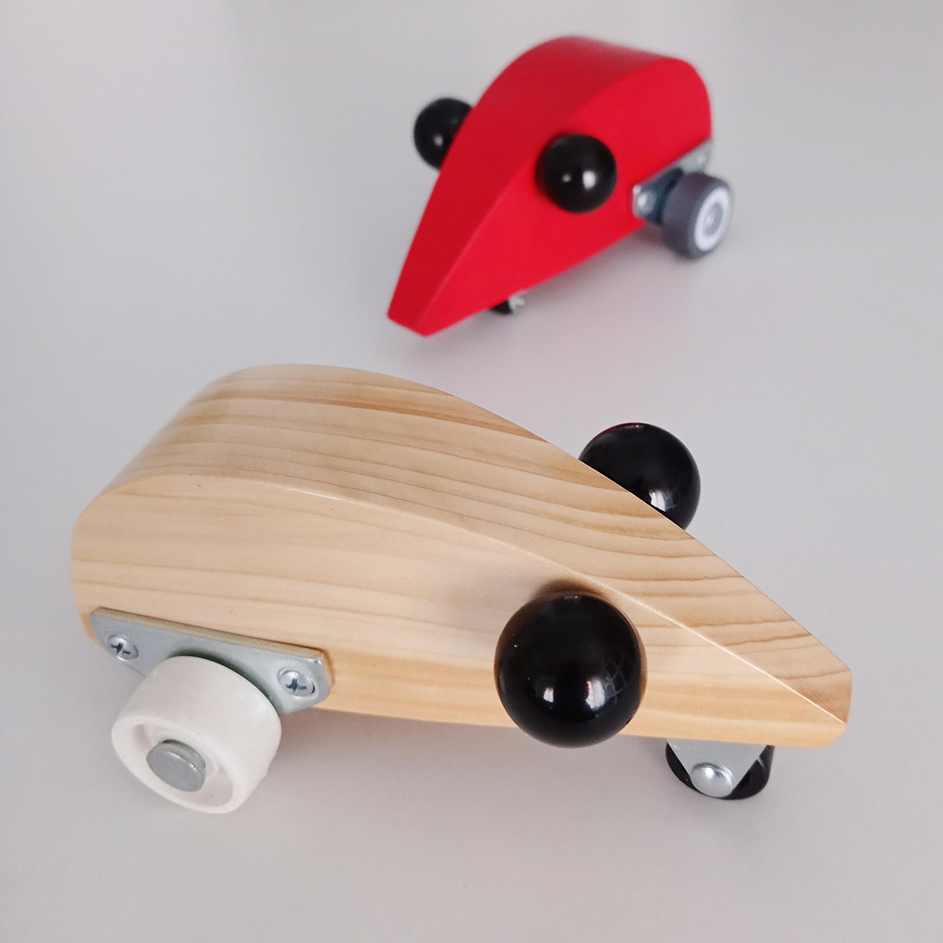 Madera y ruedas, 15 x 8 x 8 cm